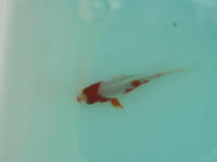 頭とヒレに赤が入っていてなかなか好きな子。尾びれに三つ赤の斑が入っているんですよ、かわいい。体型は錦鯉の子にそっくりですが。もちょっと吹き流しが長いといいんだけど。口の赤が可愛いから許す。