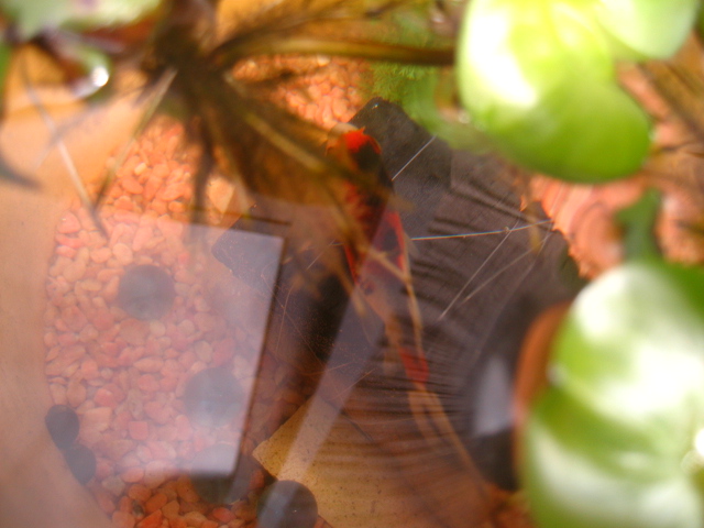 朱文金は交配のときにフナを入れているせいか、尾長のミニチュア版錦鯉のように見えますね。ああかわいい。いい色。