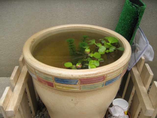 今はエアレーションもしていません。ろ過装置もなし。代わりにホテイアオイと炭を入れていますけど、果たしてこれで十分なのかよく分からない……。しかも炭はバーベキュー用を洗って水にさらしただけのやつだしなあ。