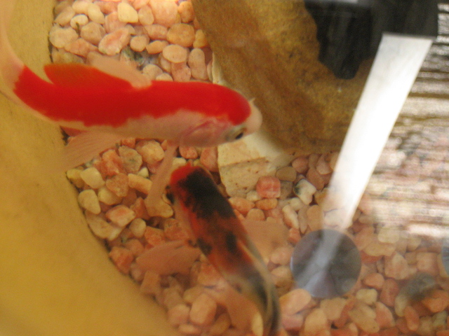 なんと我が鉢にコメットと朱文金がやってきました!