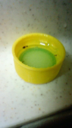 A.アリ用の罠。ホウ酸・砂糖・水で構成される。ペットボトルの蓋入り。